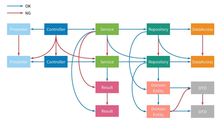 - レイヤーを跨いで依存してはいけない