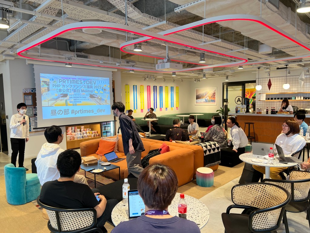 PHPカンファレンス福岡の前日にMeetupイベントを WeWork 大名(株式会社PR TIMES福岡サテライトオフィス)で行いました。
