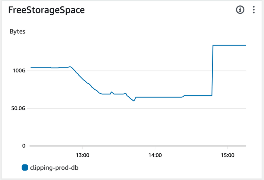 今回はテーブルサイズが20GBほどのテーブルも移行しました。移行するにあたってMySQL内部でコピーが作られるため一時的に今あるテーブルサイズの2倍必要になります。また最終的に、utf8mb4に移行するためにテーブル自体のサイズがそれぞれ4/3倍になります。しかしそこまで考慮できていませんでした。これによって、ストレージ容量不足になってしまう可能性がありました。