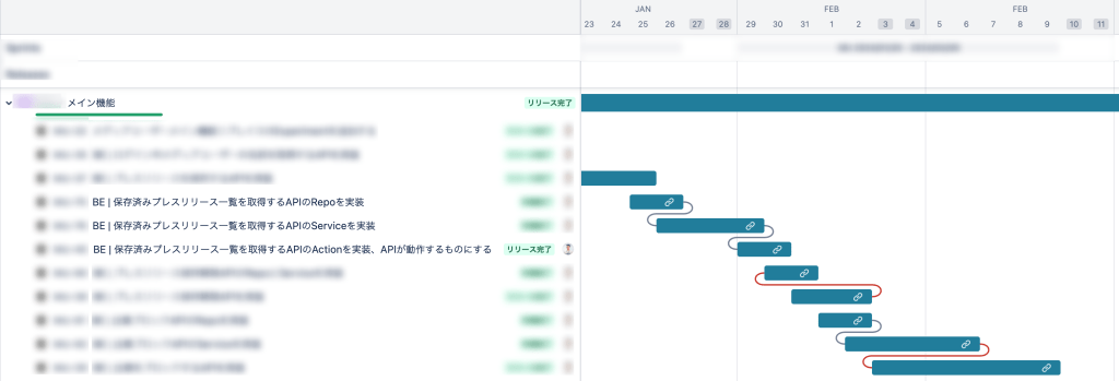プロジェクト全体は期限内に完了しましたが、実際には、いくつかのエピックの実行中に予期しない問題が発生し、これらのエピックの完了が計画よりも延長されることがありました。そのため、全体の進捗を確保するために、他のエピックの順番や実装時間を再調整しないといけないことがありました。