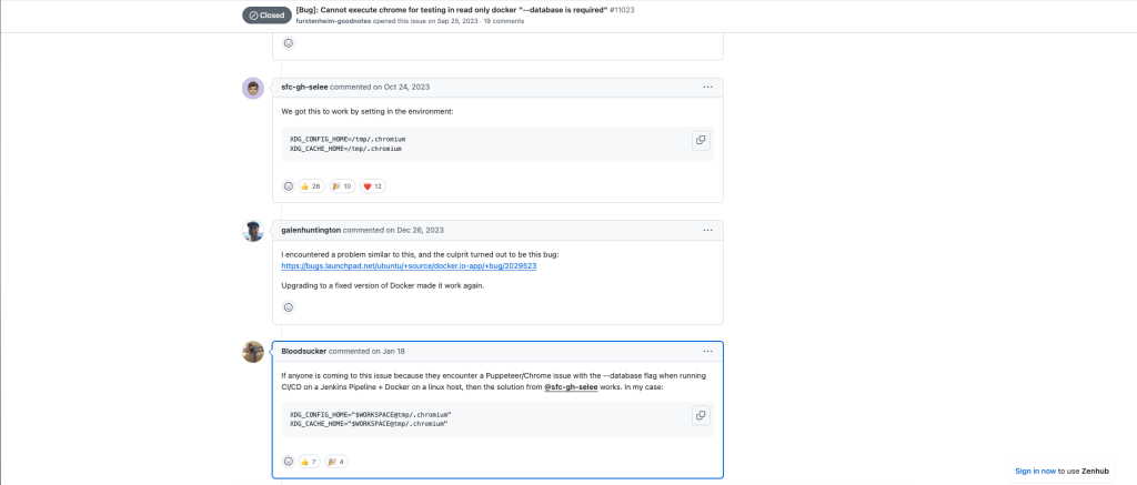 Puppeteerの主要開発者の一人が、Puppeteerの設定ファイルの保存場所を明示的に指定するという解決策を提案していました。