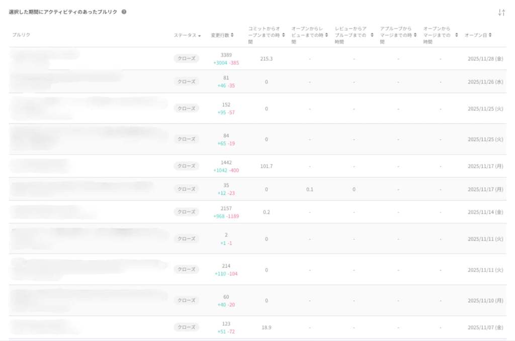 田中:UIリニューアルの分析ページのバックエンド実装が始まった時期と一致してます。10月後半は他のプロジェクトのAPI実装にも入っていて、そこで活動が増えたと思います。